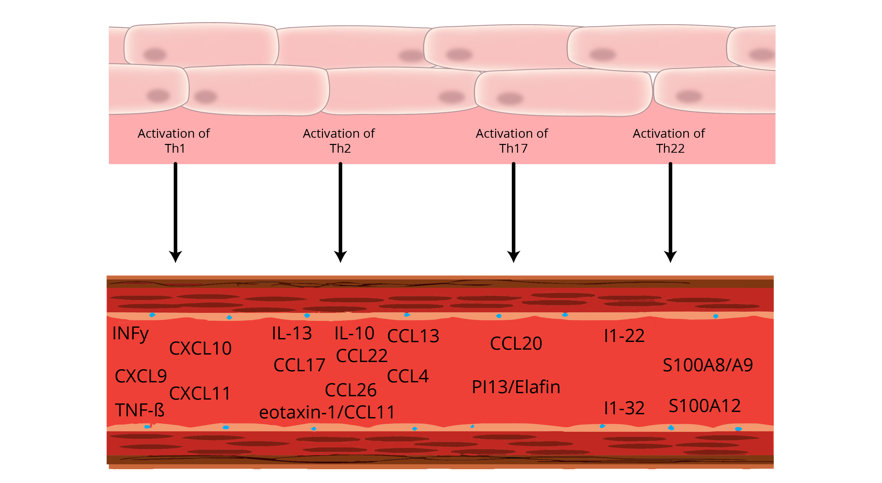 including T helper (Th)1, interferon-gamma (INF-γ), tumour necrosis factor-alpha (TNF-α), and Th17 (C-C motif