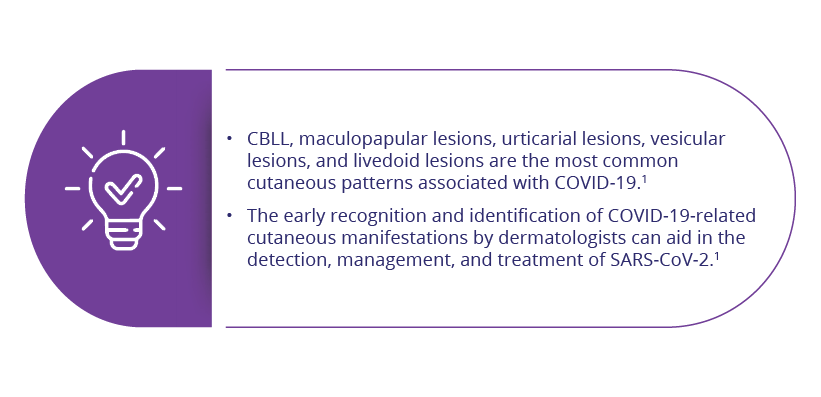 The study's objective was to review various skin manifestations brought on by SARS-CoV-2 infection.1