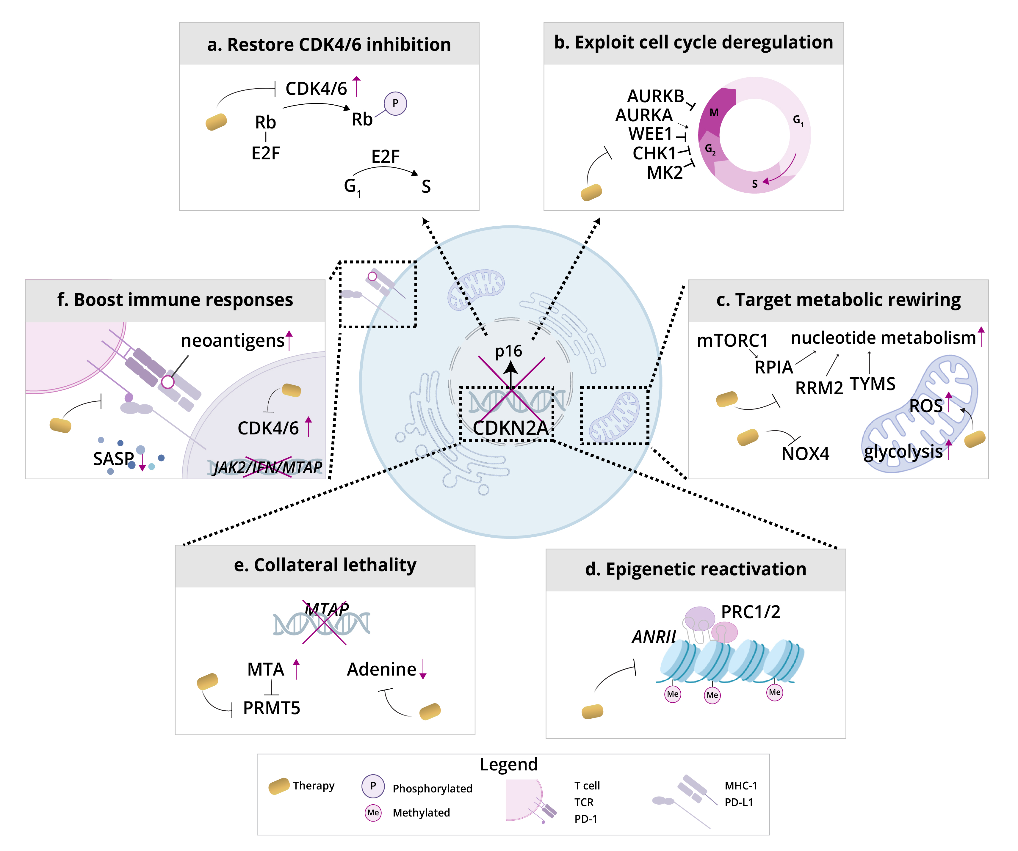 - In Fig 1e. after targeting the alterations in cell cycle regulation and metabolism from CDKN2A loss, restoration of CDKN2A expression could help when CDKN2A is inactive because of the epigenetic mechanism.2