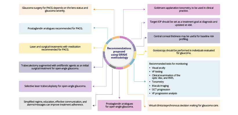 GRADE: Grading of recommendations, assessment, development, and evaluations; IOP: Intraocular pressure; OCT: Optic coherence tomography; PACG: Primary angle closure glaucoma;