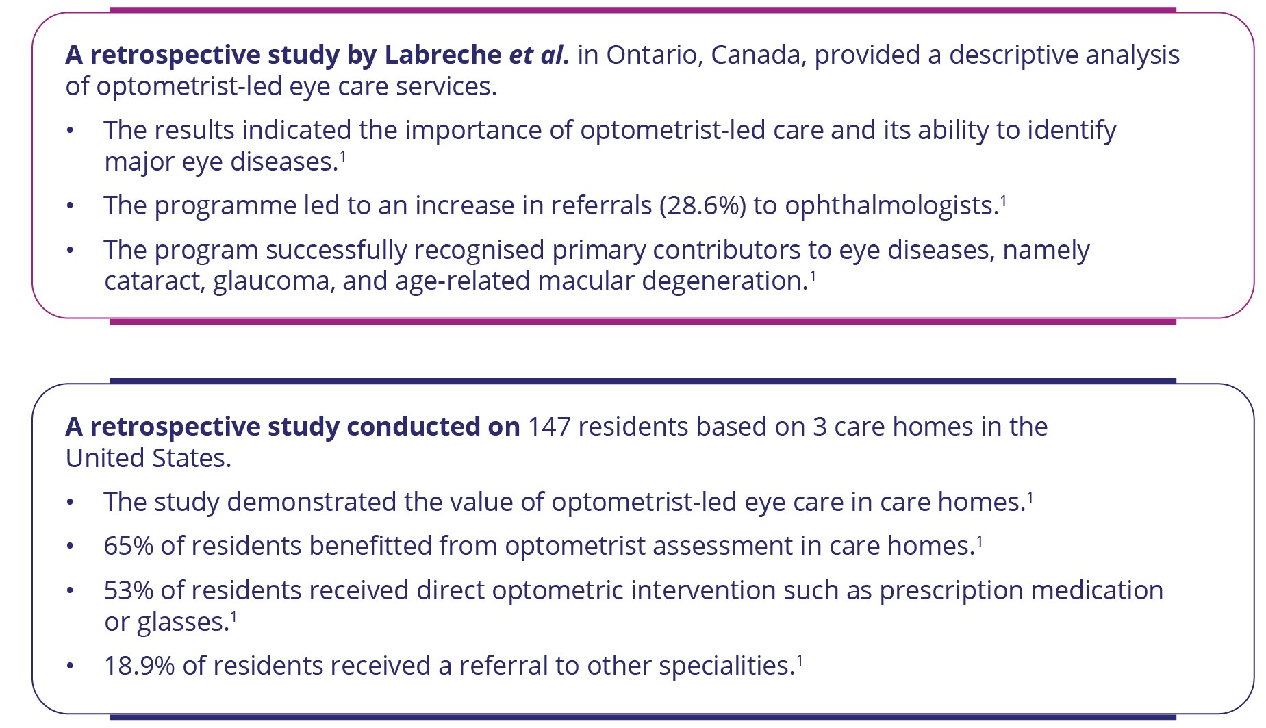 - Proactive domiciliary optometrist-led services can improve eye care.1